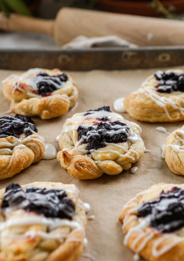My braided Cream Cheese Danish with puff pastry and fruit is a sweet, buttery, flakey layered breakfast or treat that is filled with a creamy cheese layer and topped with delicious jam or fruit. The pastry is soft and delicate…