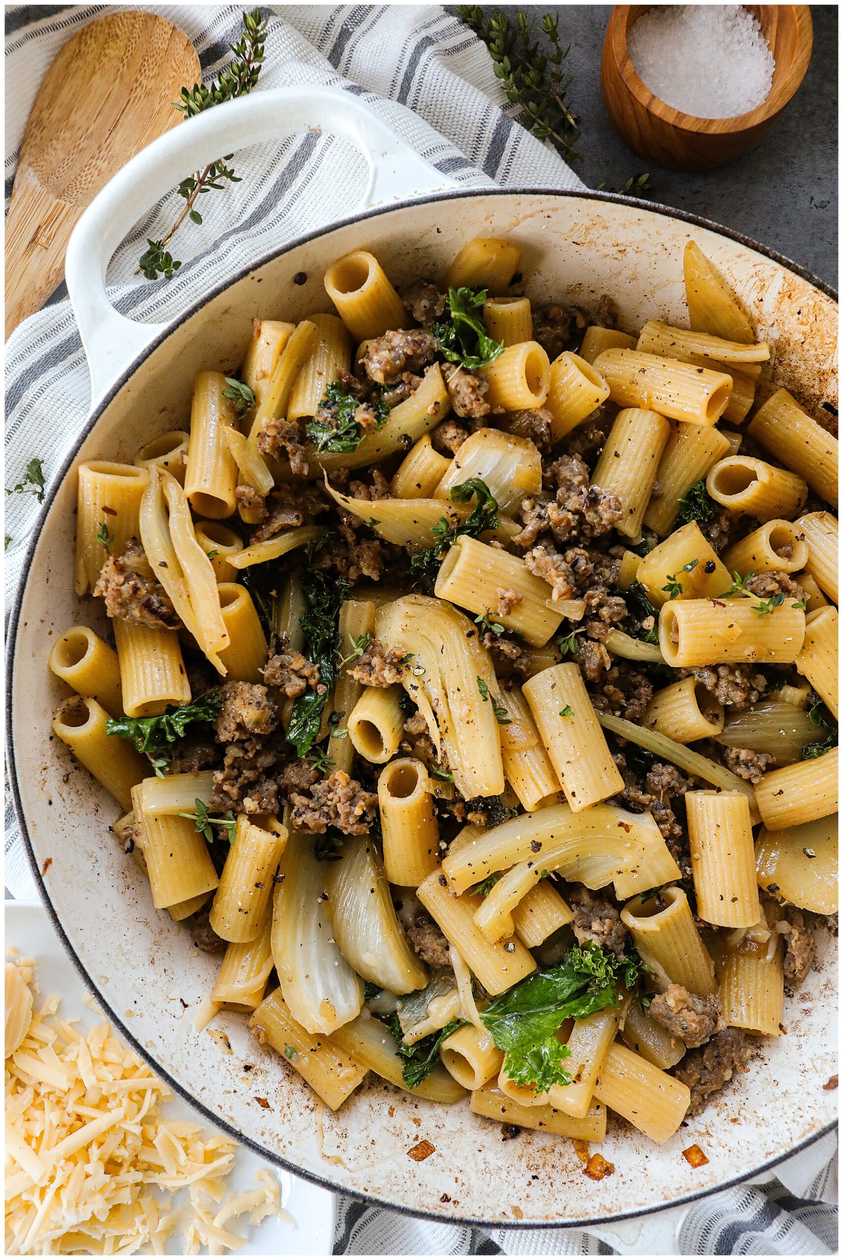 This dish is the perfect cozy pasta recipe to kick off the fall season. Packed with savory sausage and caramelized fennel, the two flavors come together into a beautiful dish that is perfect for family dinners this autumn. Find the full recipe when you click {HERE}.