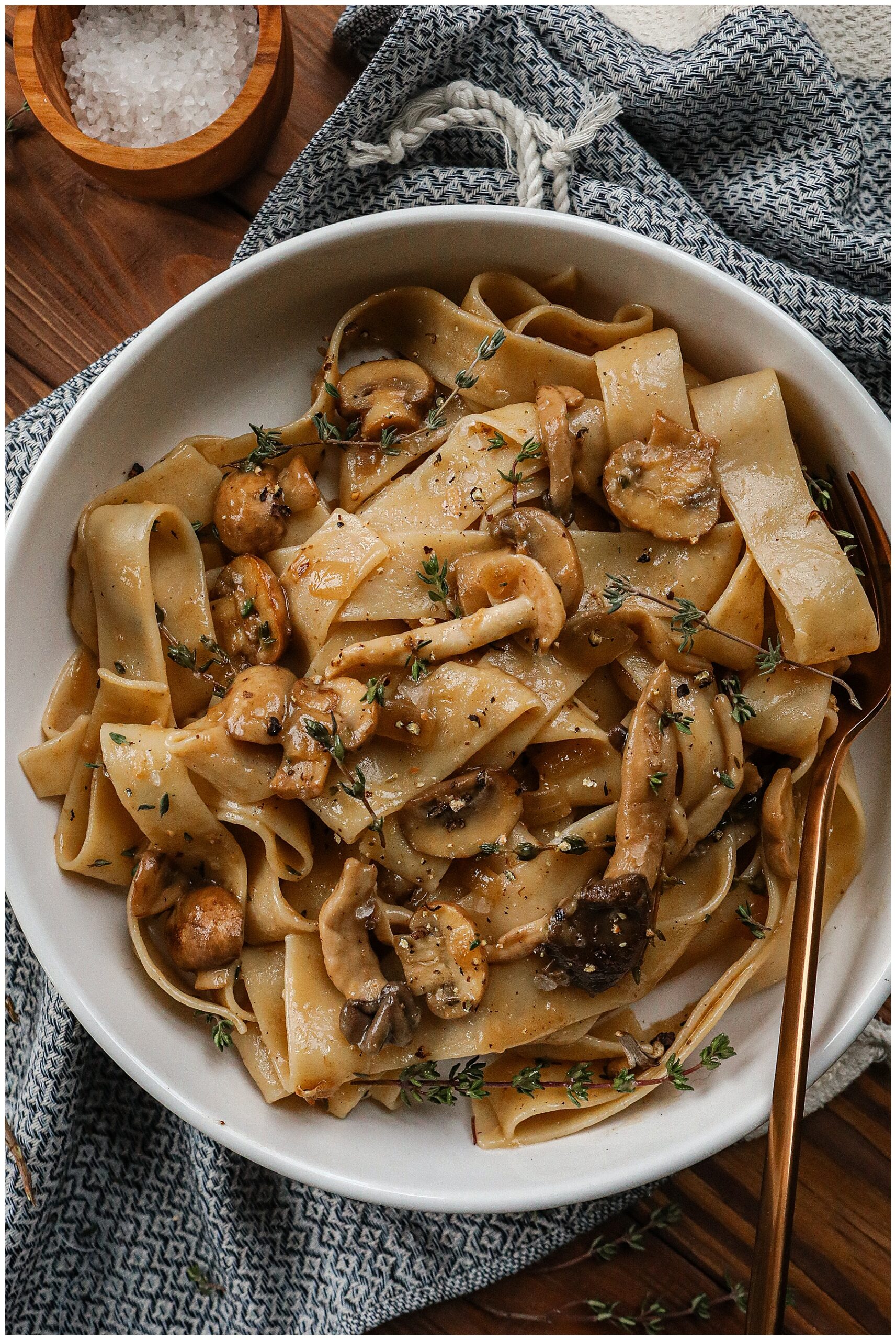 If you are a mushroom lover, you are in luck. This Caramelized Wild Mushroom Pappardelle Pasta is a deliciously earthy and savory dish that follows a simple recipe. It uses a variety of wild and regular mushrooms all caramelized in butter. Find out what mushrooms I used when you click {HERE}.