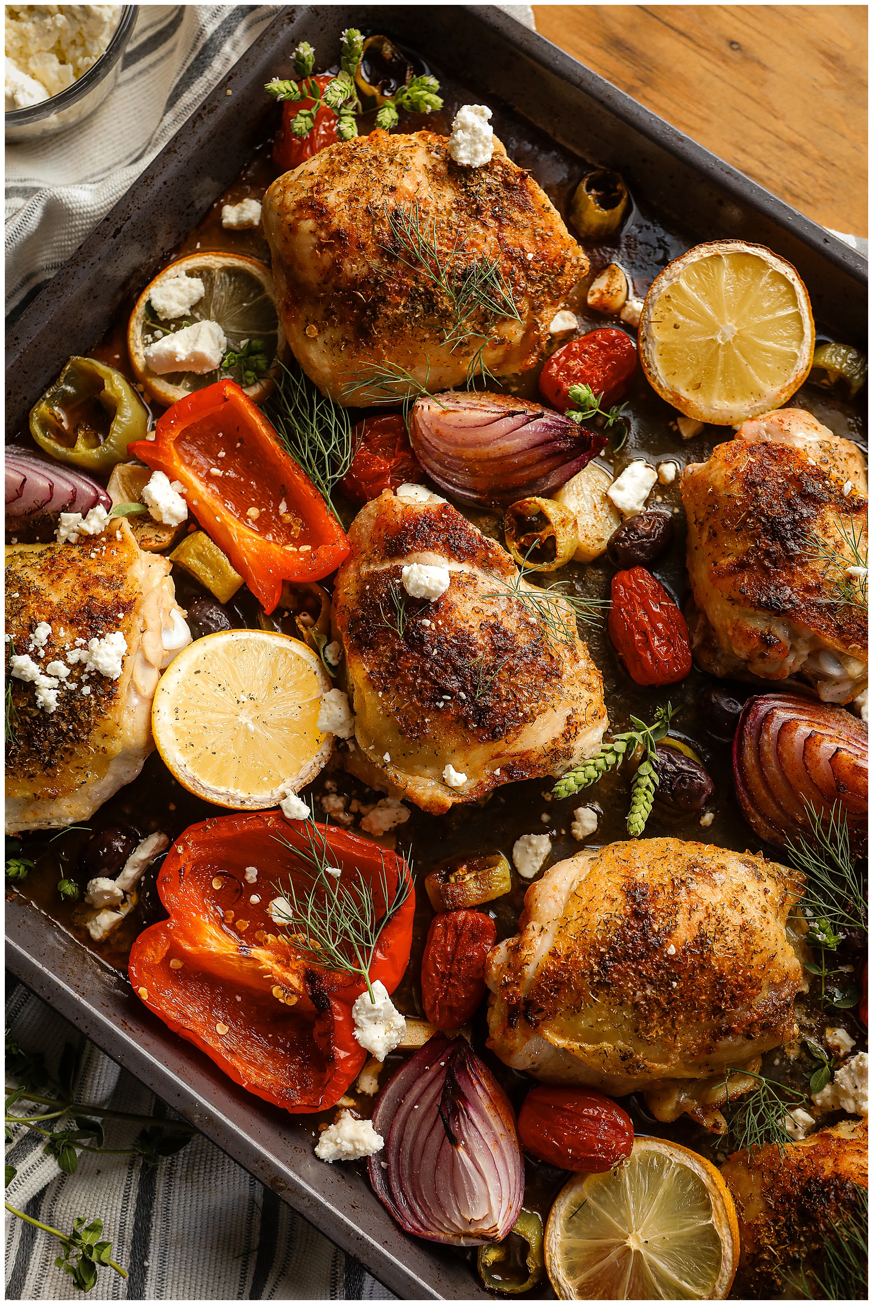 Sheet Pan Greek Chicken Recipe with Olive Dressing