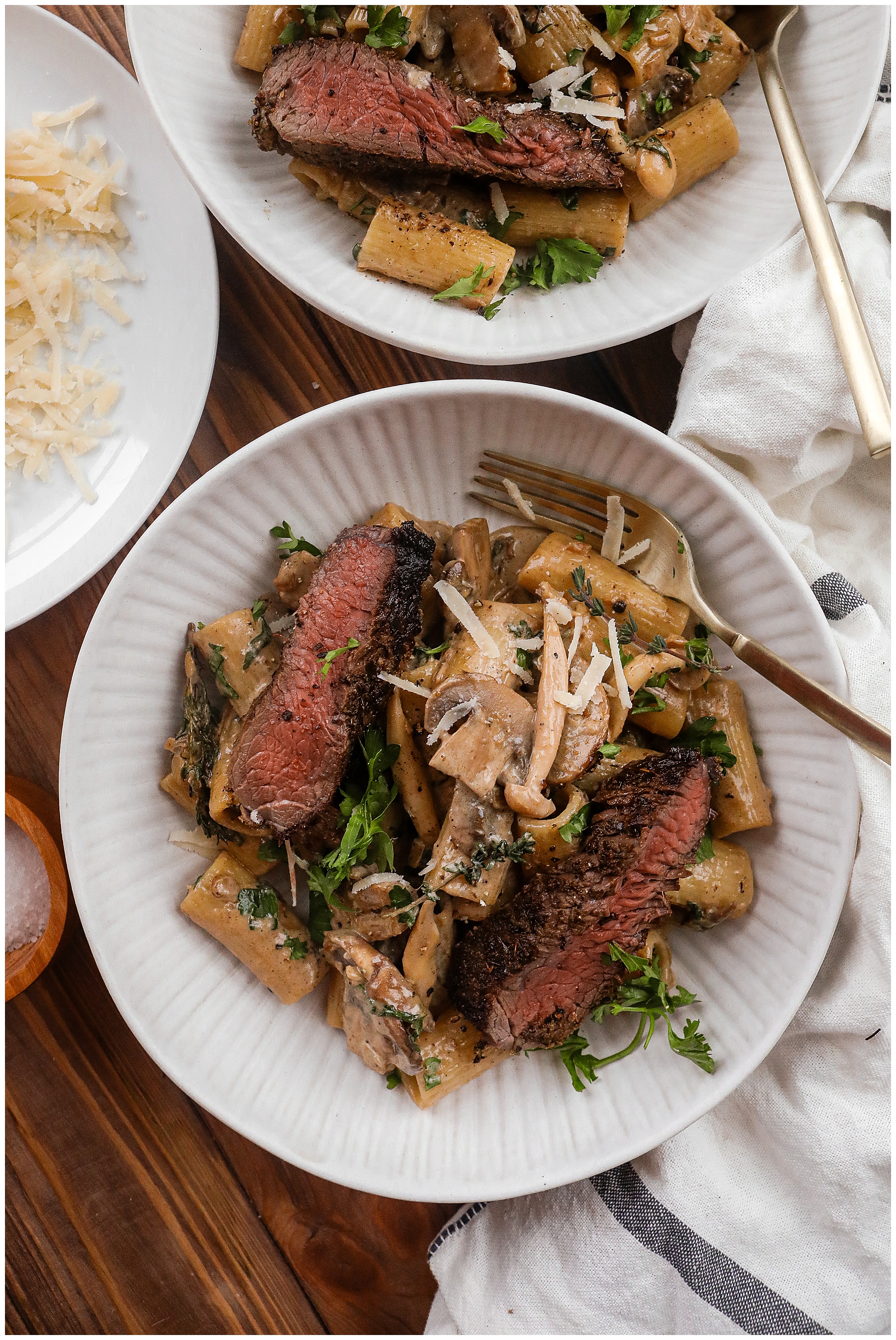 A cozy take on the classic combination of steak and mushrooms, this hearty pasta is just right for colder weather. You can make it for a casual weekend dinner or for a holiday, and it would be perfect either way! Besides, who doesn’t love a homey, savory dish? Make Bourbon Mushroom Steak Pasta when you click {HERE}