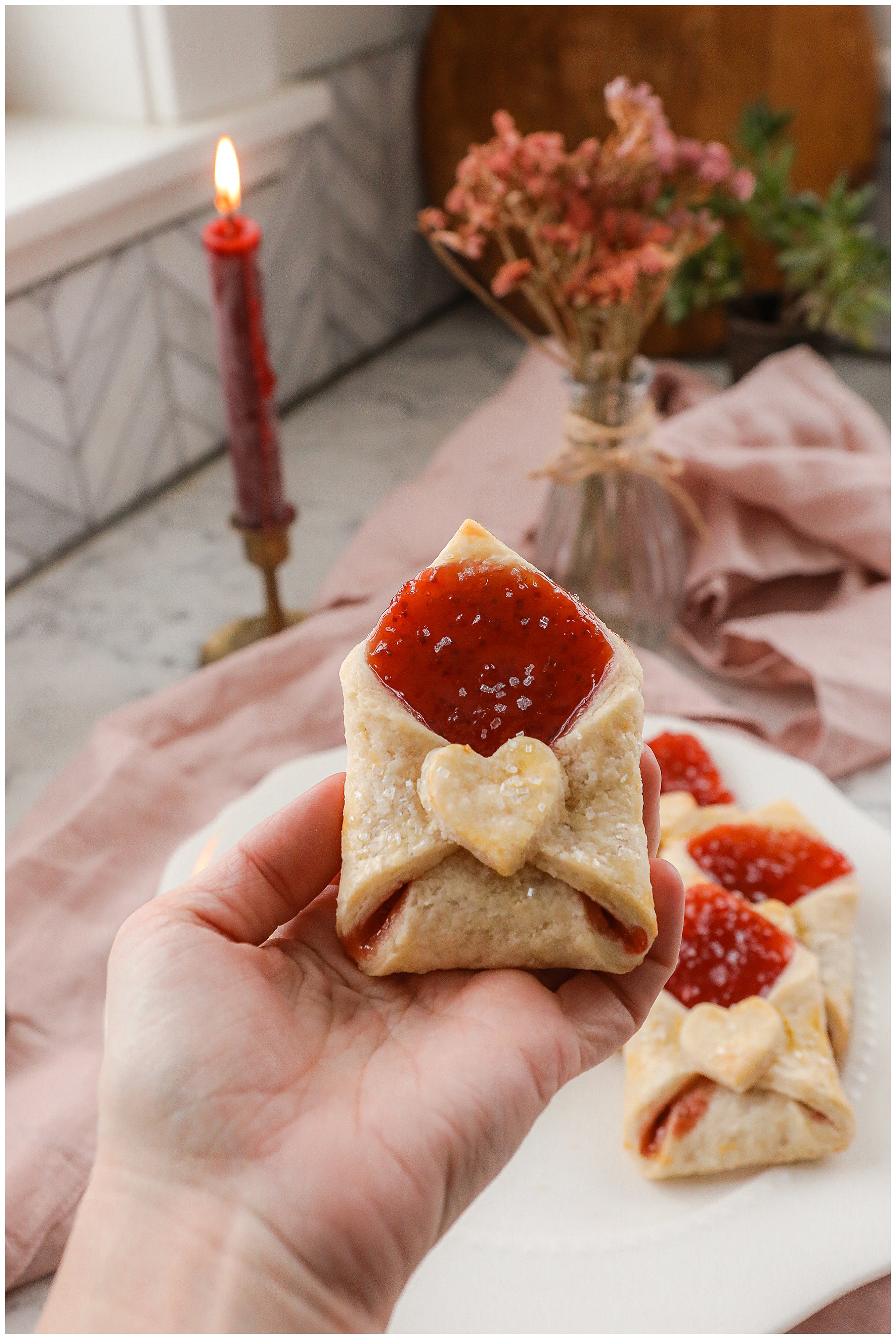 Valentine’s Day is around the corner and aren’t these little Love Letter Strawberry Hand Pies the cutest way to celebrate! I love a cute, little dessert – especially a pie based one because pie is my favorite dessert. These homemade love letter hand pies are filled with a delicious, sweet strawberry jam that is easy to make and will be a hit with whomever you decide to send a little love to.