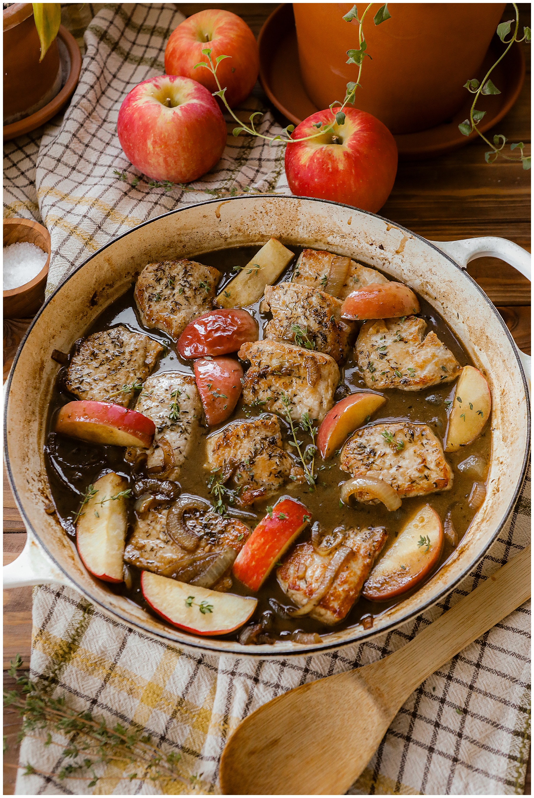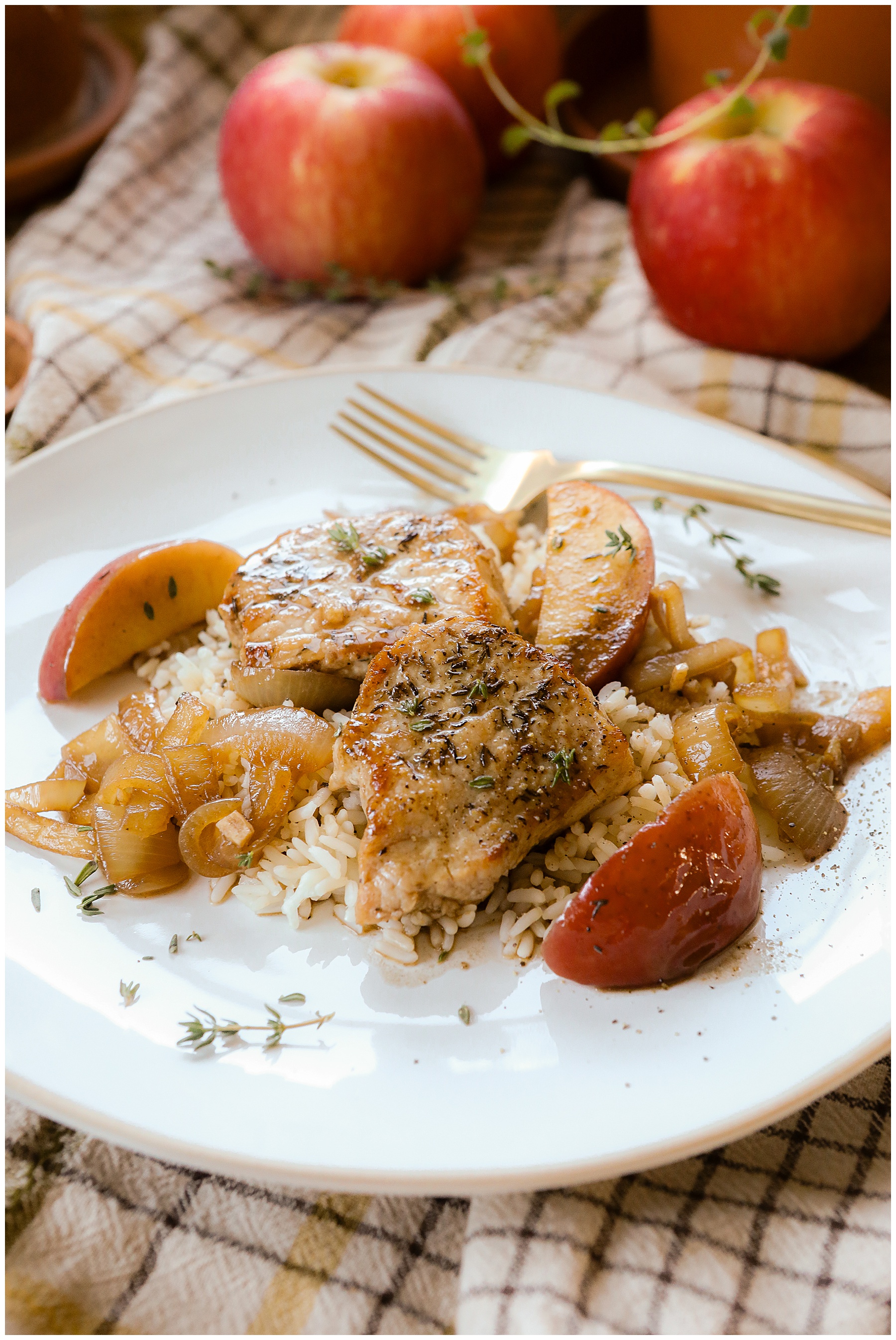 Out schedule finally, FINALLY slowed down! I have to say, I love the calm of November. It used to be one of my least favorite months but now I cherish this lull between the busy sports season of September and October and the rush of December. It always gives me a chance to breathe, get back into the kitchen and get creative. With our weather finally being chilly and the leaves all falling, this cozy Pork Tenderloin with apples and onions really seems to be made for the season. It gives me all the warmth with the savory flavors from the pork and onions and still carries that sweetness of harvest season with the crisp apples.
