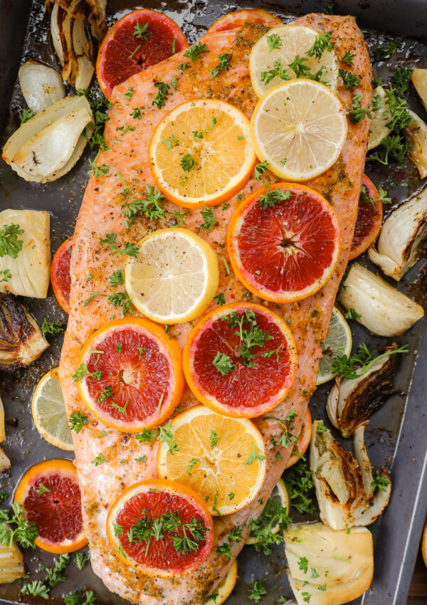 Delectable Citrus Salmon with roasted fennel is bright and exquisite dinner meal. The salmon roasts up to be fork tender with incredible citrus butter flavor and pairs perfectly with sweetened, caramelized fennel. Save this 30 minute meal now so you…