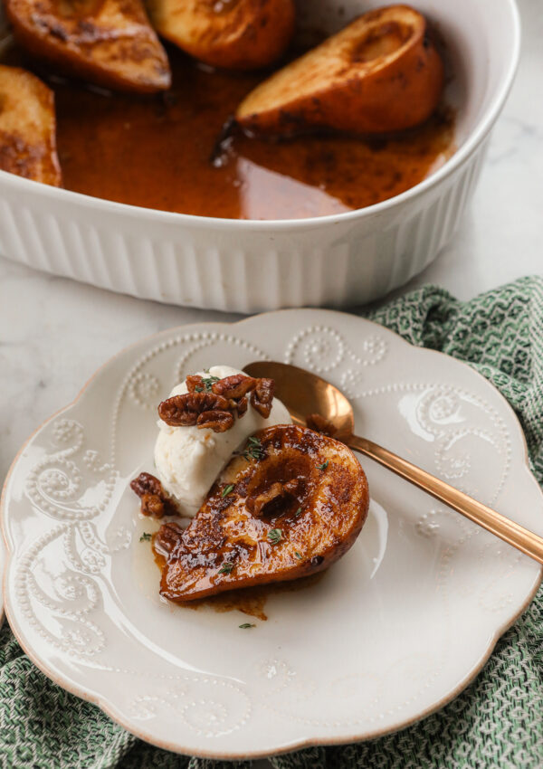 Maple Baked Pears with candied pecans